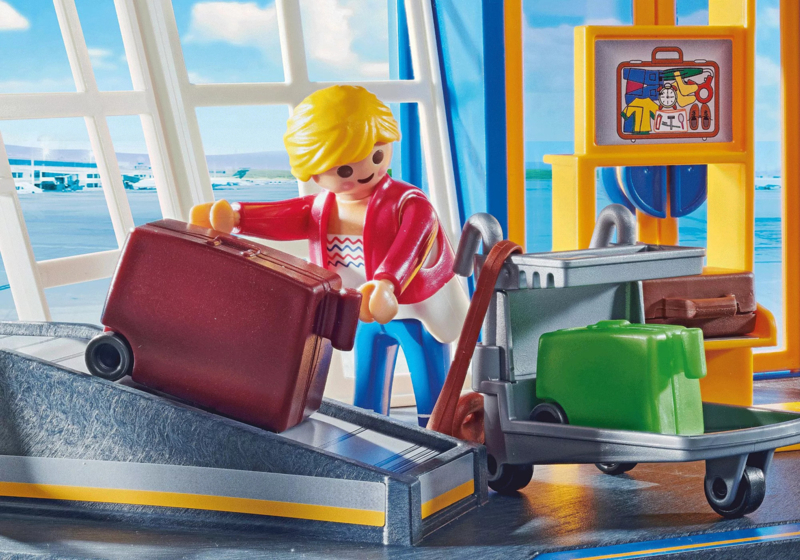 Op de PLAYMOBIL City Action luchthaven is het een drukte van belang! Check je bagage, doorloop de veiligheidscontrole en stap in het vliegtuig! De piloot checkt het vliegtuig nog een keer en de verkeerstoren stuurt het signaal dat het vliegtuig op mag stijgen. Waar vlieg jij naartoe?